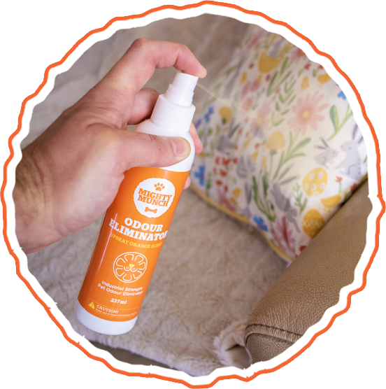 We may be used to our pet's odours, but our guests are not. Mighty Munch has developed a break-through science-based formula that targets odours and eliminates them, safely. It is a spray that you can use all around the home.